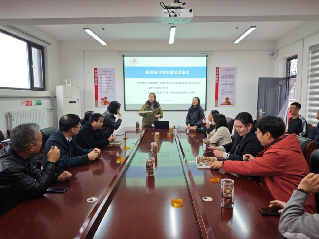 山西省现代农业产业功能食品技术体系岗位专家王玉霞研究员带领团队成员成功研发制作了桑葚桑叶功能食品,并于11月7日举办品鉴会。此次活动是院党委创新宣讲形式、将精神谱系学习融入业务工作的具体实践。品鉴会聚焦与山西胃你好食品有限公司合作研发的系列桑葚桑叶功能食品,通过现场展示、试吃对比等方式,广泛征求院内职工对产品口感、配方、包装及市场定位等方面的改进意见。与会职工积极参与,品评讨论热烈,不仅为产品的优化升级提供了宝贵的“内行”视角,更在交流互动中深化了对蚕桑资源高值化利用、服务大健康产业的认识,激发了科研人员立足岗位、精益求精、勇于创新的实干精神,以实际行动诠释了科研工作者追求真理、服务社会的责任担当。